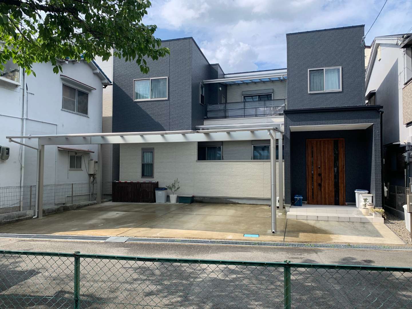 少し土地が歪な形状ではありましたが、とてもきれいなカーポートをつけさせて頂きました。ちなみにカーポートと一緒に1階2階部分のテラス屋根もつけています。