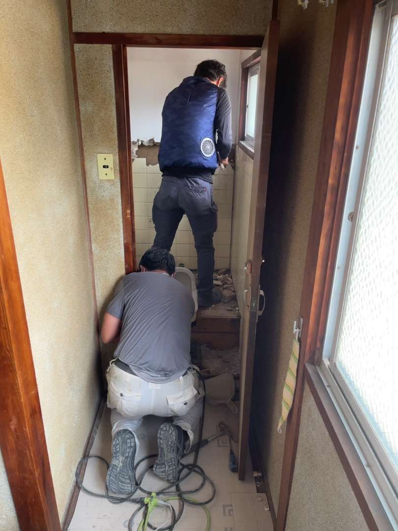 築年数が経っているご自宅や事務所だと和式便所のところも多いかと思います。風情があり和式便所も良いのですが年齢を重ねると座ることが苦痛になってきますよね。そこで弊社では和式便所から洋式便所への交換。そしてトイレと部屋の間に段差があったのでフローリングを増貼りして段差を解消!